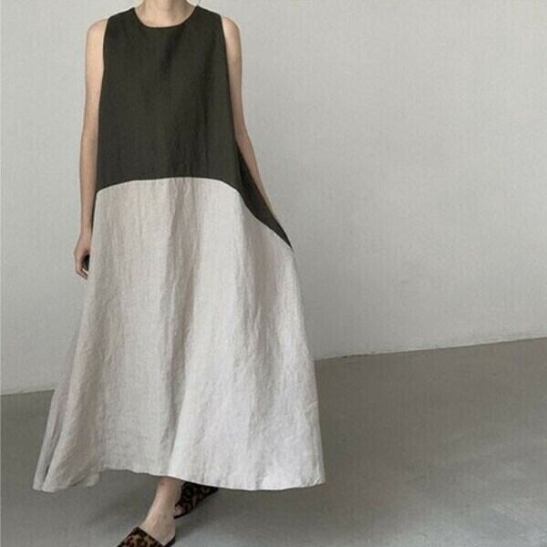 洗練されたAラインシルエットが魅力のバイカラーノースリーブワンピース。シンプルながらも個性的なデザインが、大人の女性にぴったりです!ノースリーブのため、軽やかな着心地とともに、腕をすっきりと見せる効果もあります。