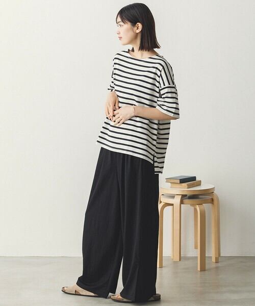 身幅はゆったりとしていて、体のラインを拾いにくいリラックスシルエット。