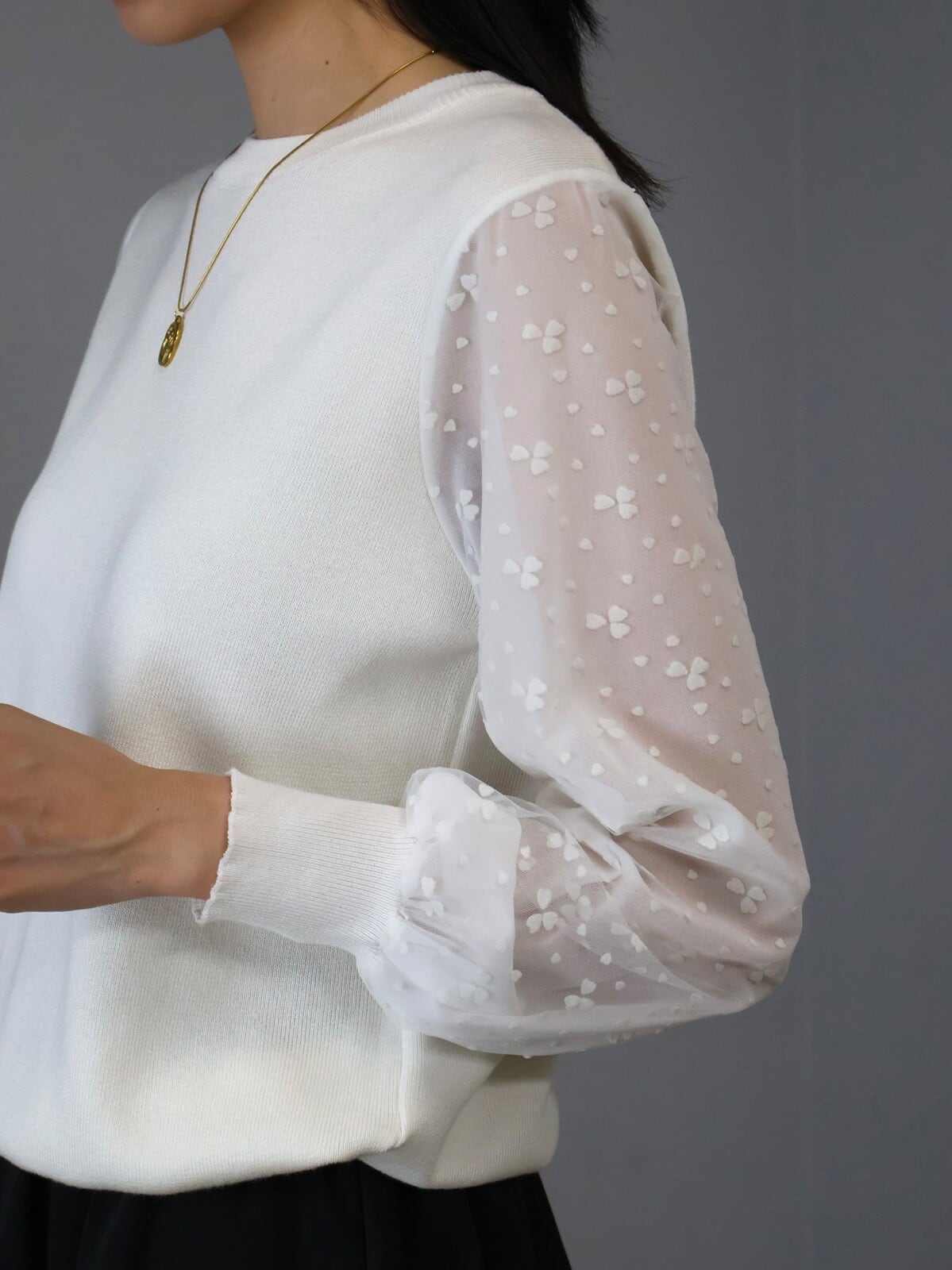 knit pullover flower sleeve