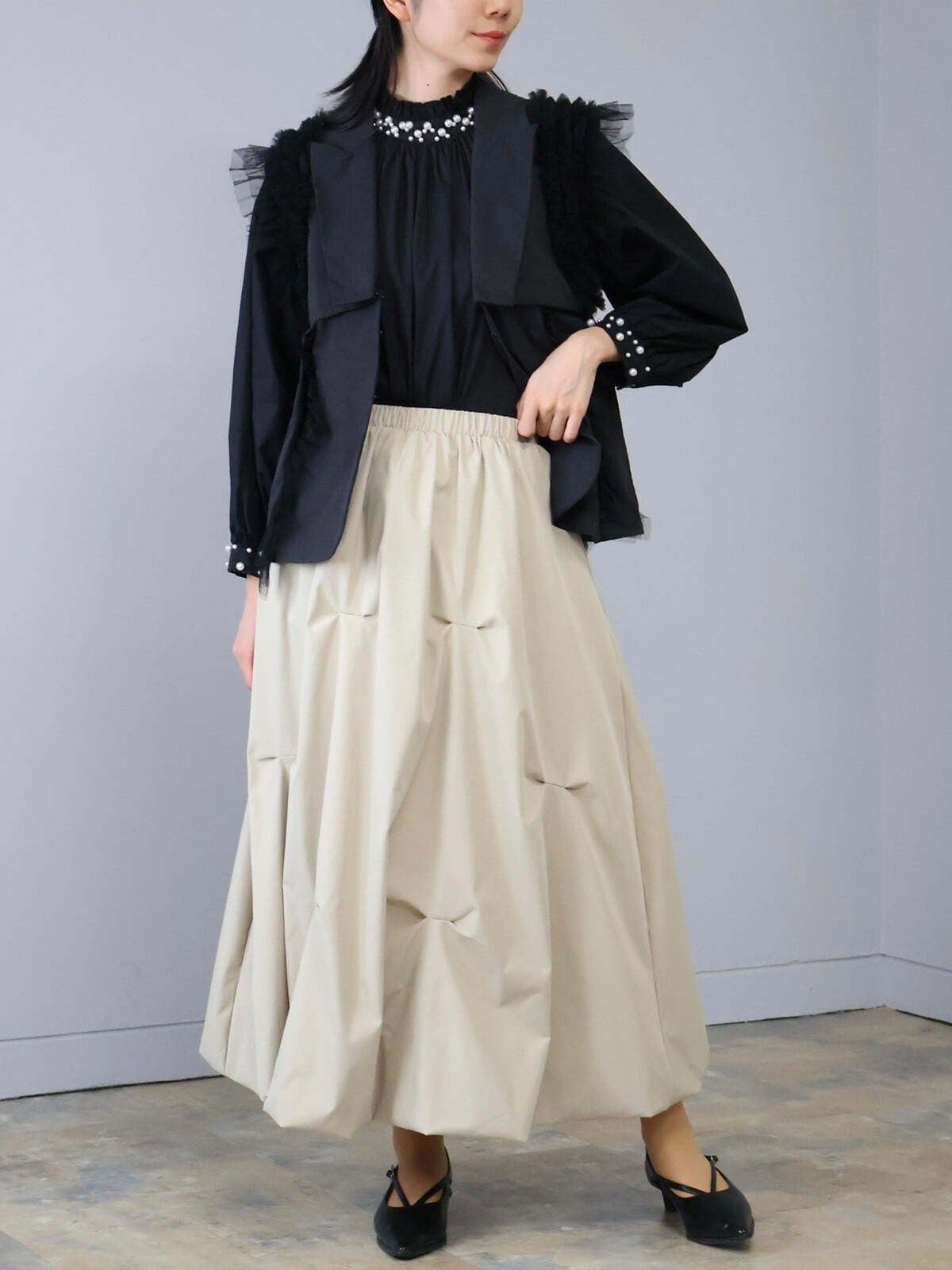 シンプルで普段使いしやすいタック入りバルーンスカート