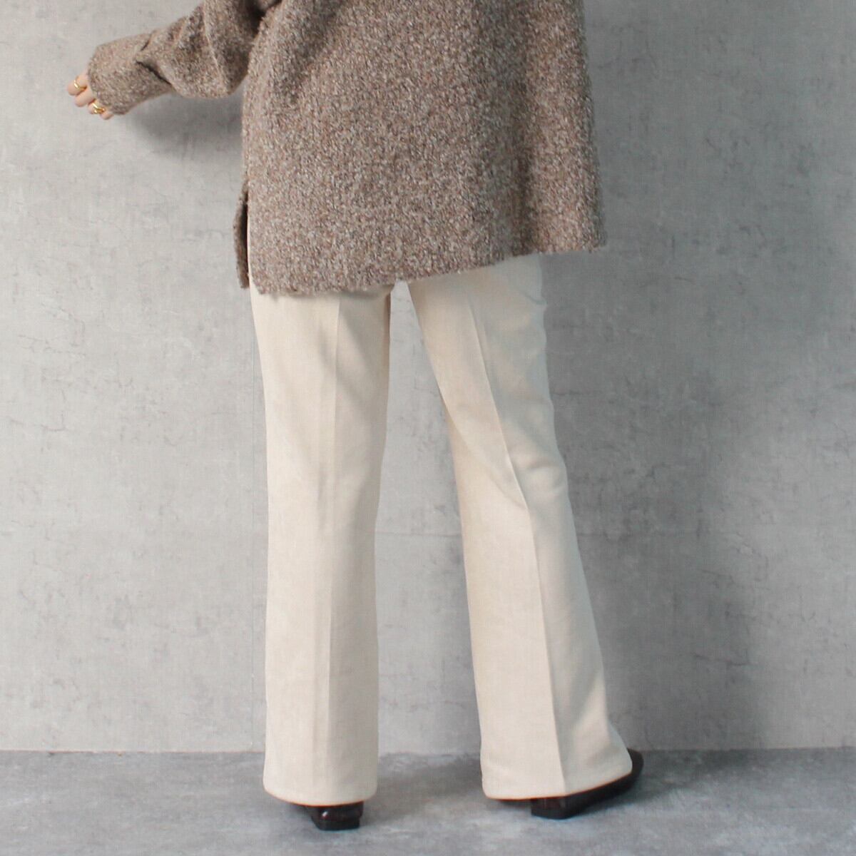 セミフレアシルエットとウエストゴム、伸縮性がある生地により履き心地よいパンツです。
