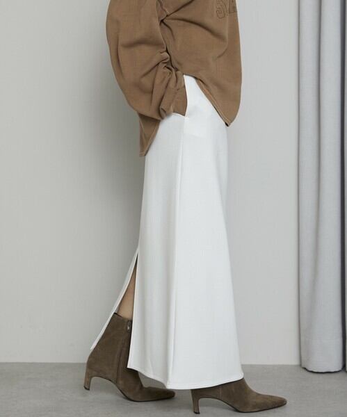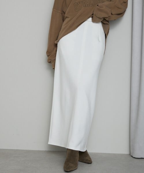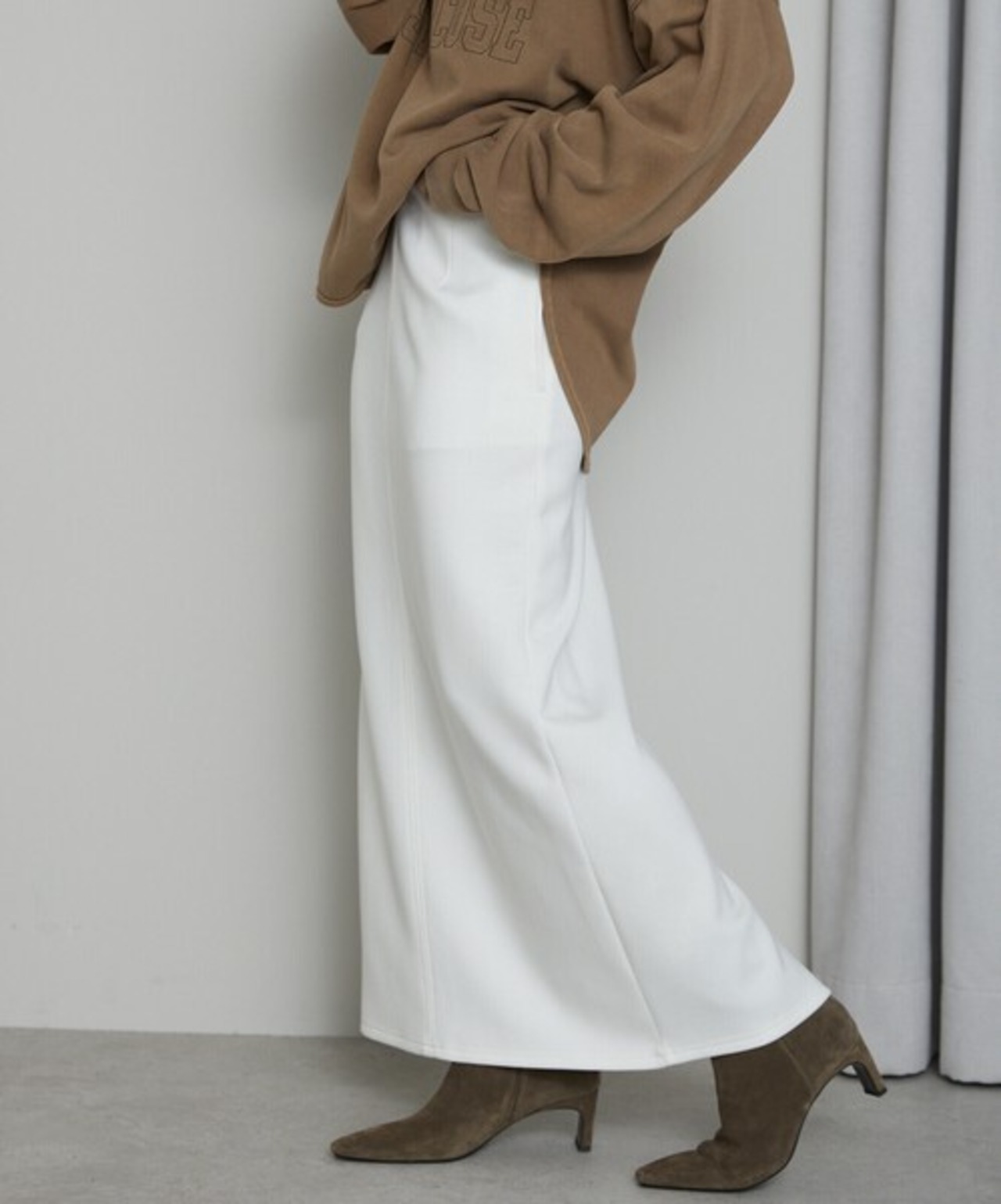 トレンドのタイトスカートを、大人カジュアルに着こなせる万能アイテム。
