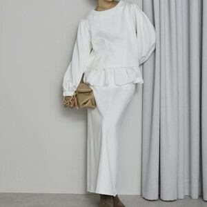 後裾スリットが動きやすさをプラスし、女性らしい抜け感を演出。脇ポケットあり。
