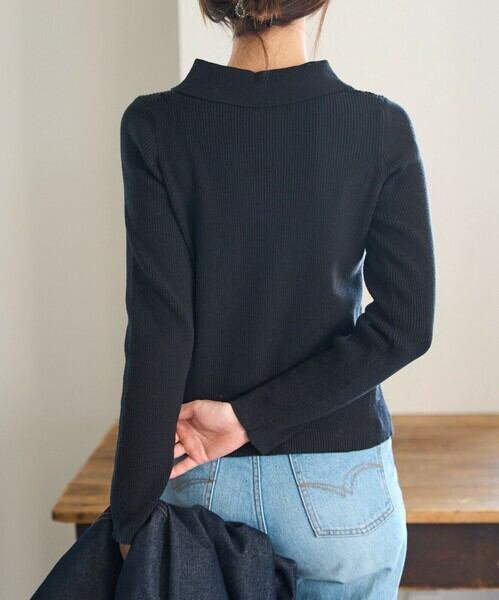 クラシックな印象を与え、どんなスタイルにも幅広く合わせられる万能ニット。タイトなシルエットでありながらもほどよい伸縮性があり1枚で着られるニットです。