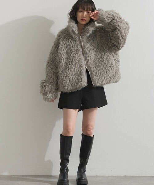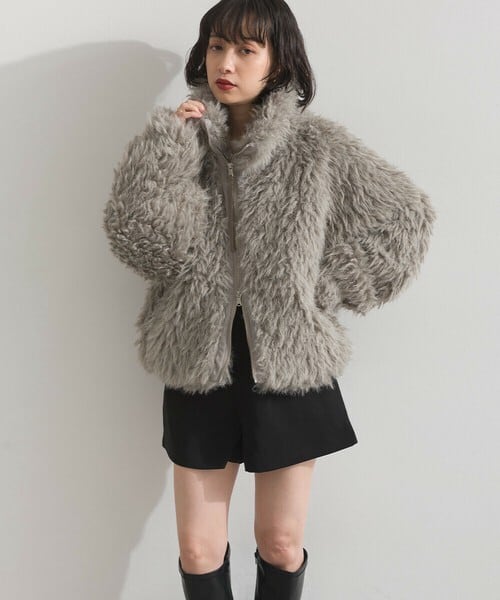 ふんわりとしたミックスシープファーを使用したスタンドブルゾン