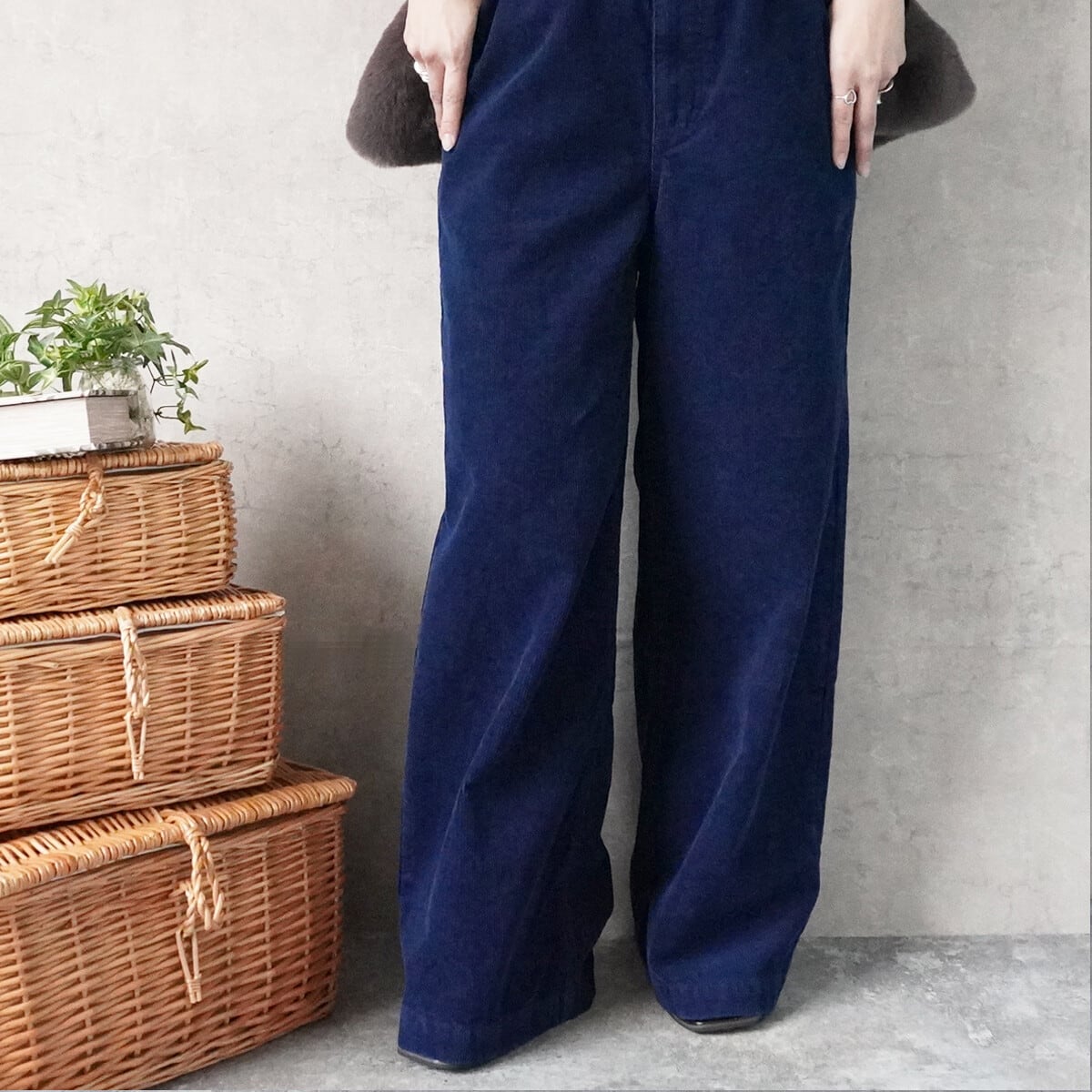 綿100%のコーデュロイの生地をインティゴで染め、強調しすぎない細畝を使用したコーデュロイワイドパンツ