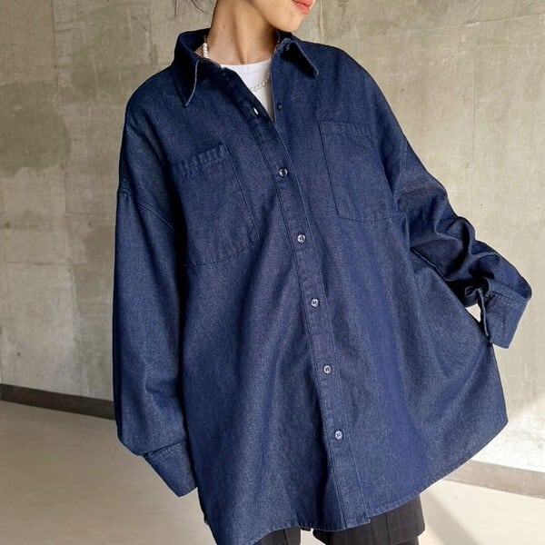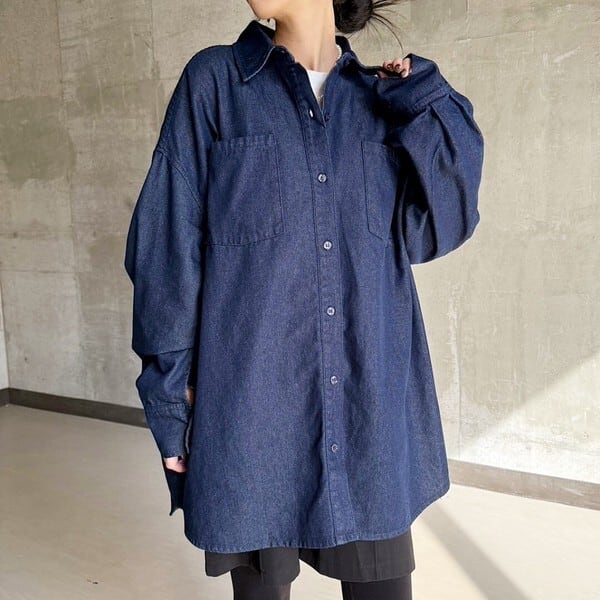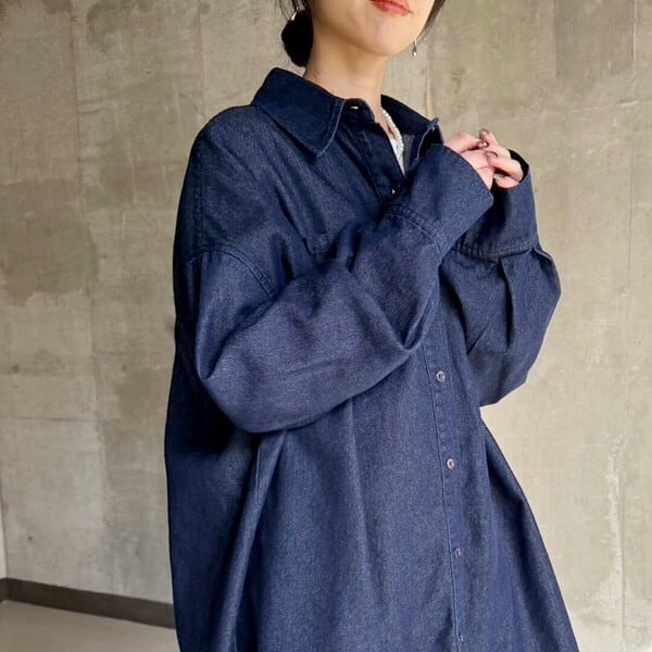 ゆとりを持たせたオーバーサイズシルエットのデニムシャツ