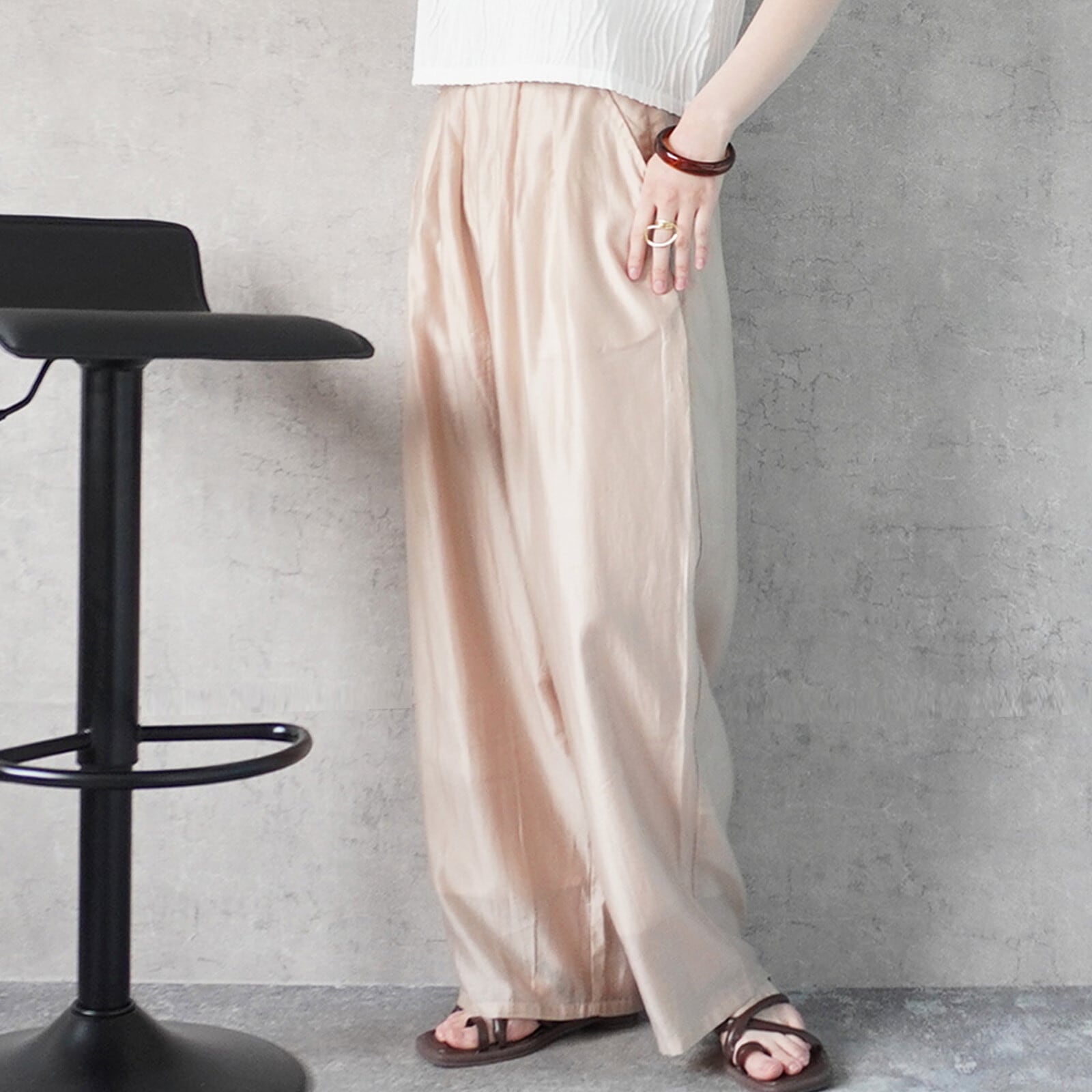ワイドシルエットなので、体の気になる部分を拾わず、綺麗に魅せてくれます!