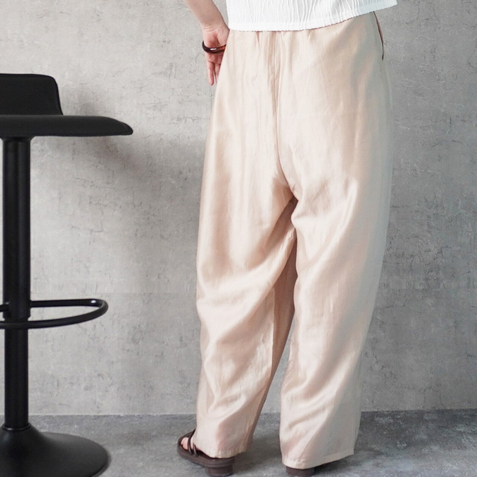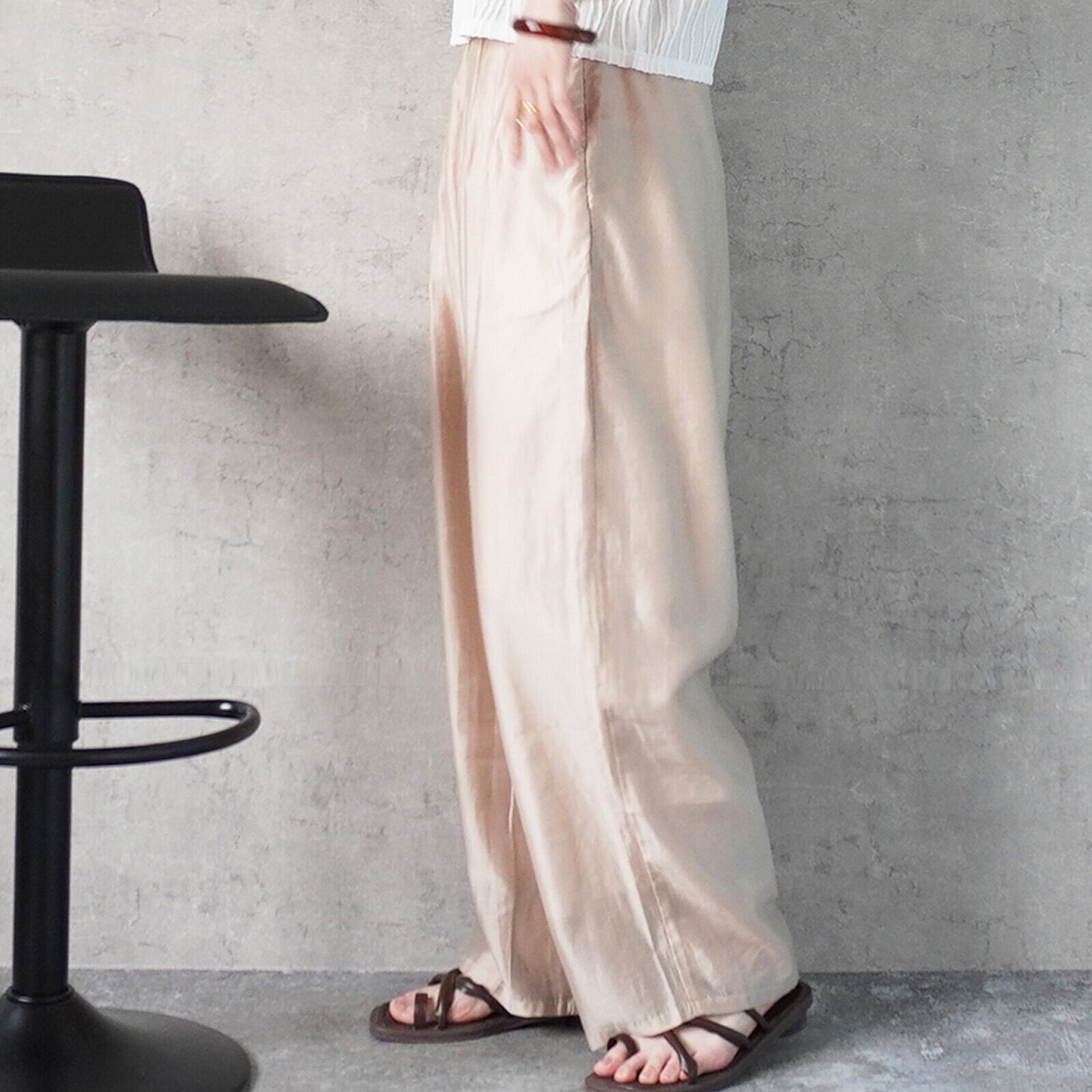 春夏らしいシアー素材で仕上げたコクーンシルエットのパンツ